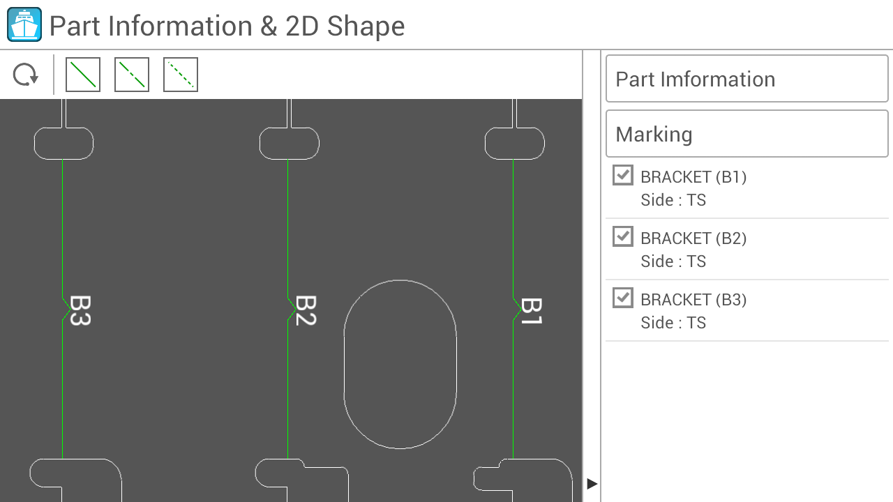 - 外輪廓形狀/孔/標記顯示為2D圖像