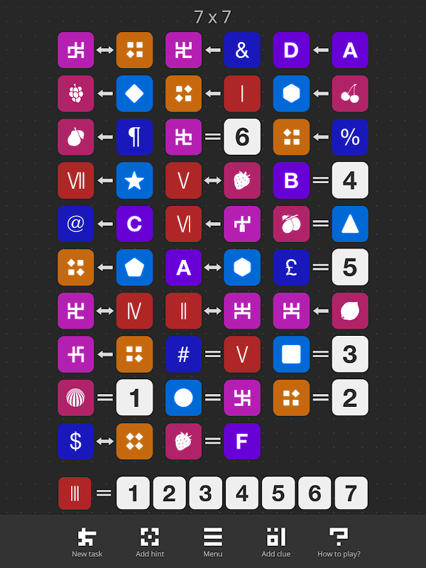 每一行的游戏框中的格子是按照偶然的顺序排列。游戏框中的格子并不会向玩家直接表示其排列逻辑或者顺序。玩家的任务:对游戏框中的内容进行基本的分析,按照一定的(逻辑)顺序对其排列。