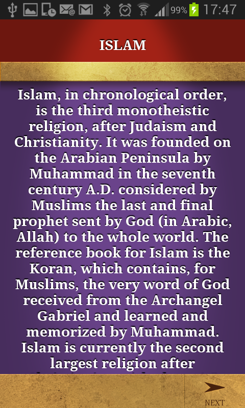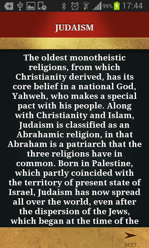 Test your knowledge and discover the easiest and funniest way of learning about the great universal religions: the doctrinal principles, sacred texts, liturgy and rites. Religion has always been and continues to be a fundamental dimension of the human being, which is essential for the interpretation of the past and the understanding of the present.