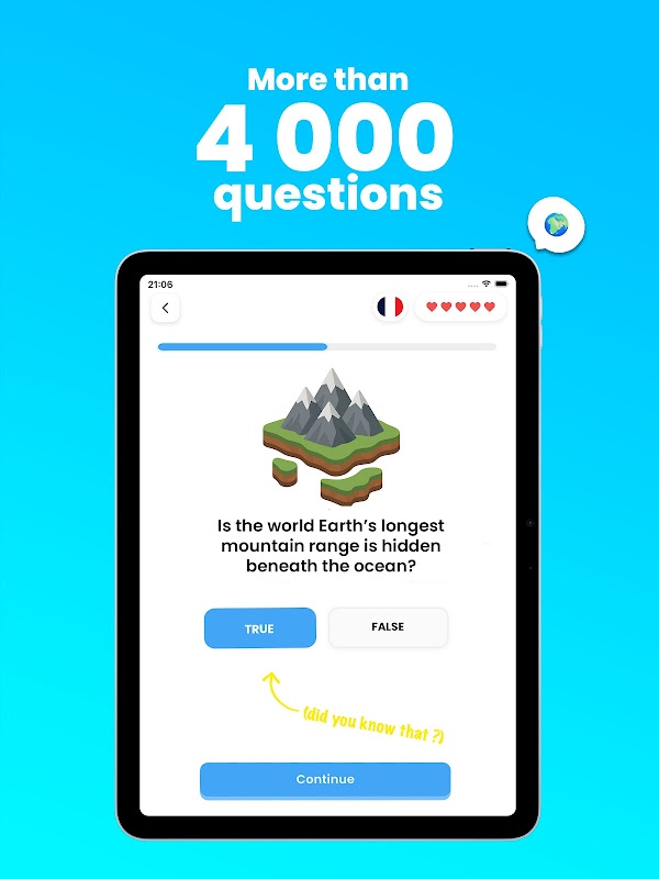 • 多元的測驗:了解世界各地的地理、文化遺產、地標和有趣的事實。