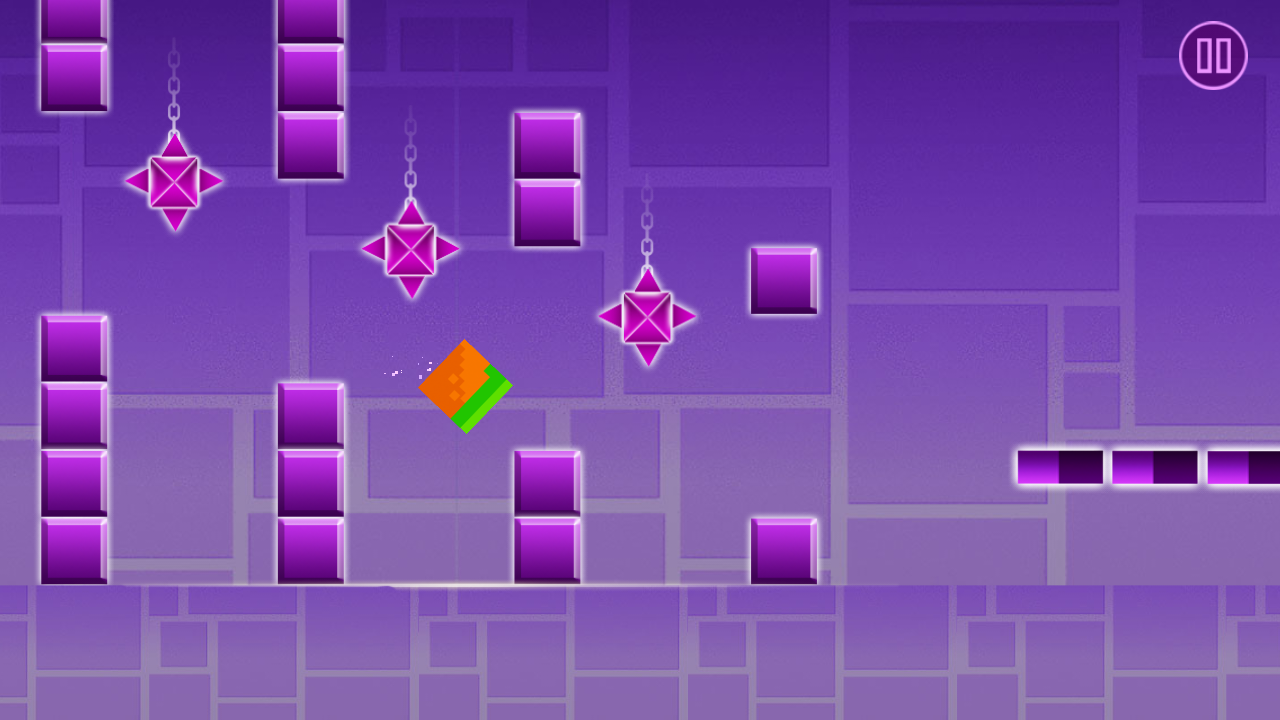 遊戲操作簡單,只需要輕輕觸摸屏幕,操作方塊跳躍或者飛翔,躲避路途中的各種障礙。