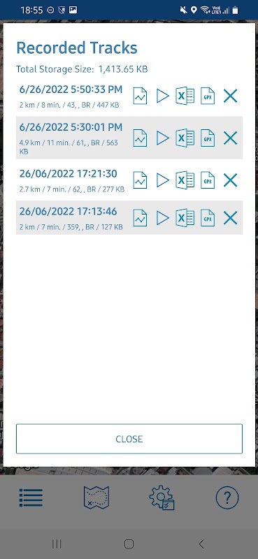 - 將記錄的軌跡數據導出到 XLSX 電子表格、GPX 和 KMZ 文件