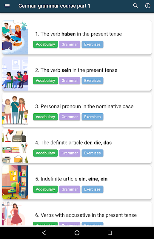 不要再等待 - 安裝我們的德語學習課程並透過文字掌握文法,從而擴展您的語言技能。透過引人入勝且易於理解的課程發現學習的樂趣,使您能夠在不同情況下用德語自由交流。