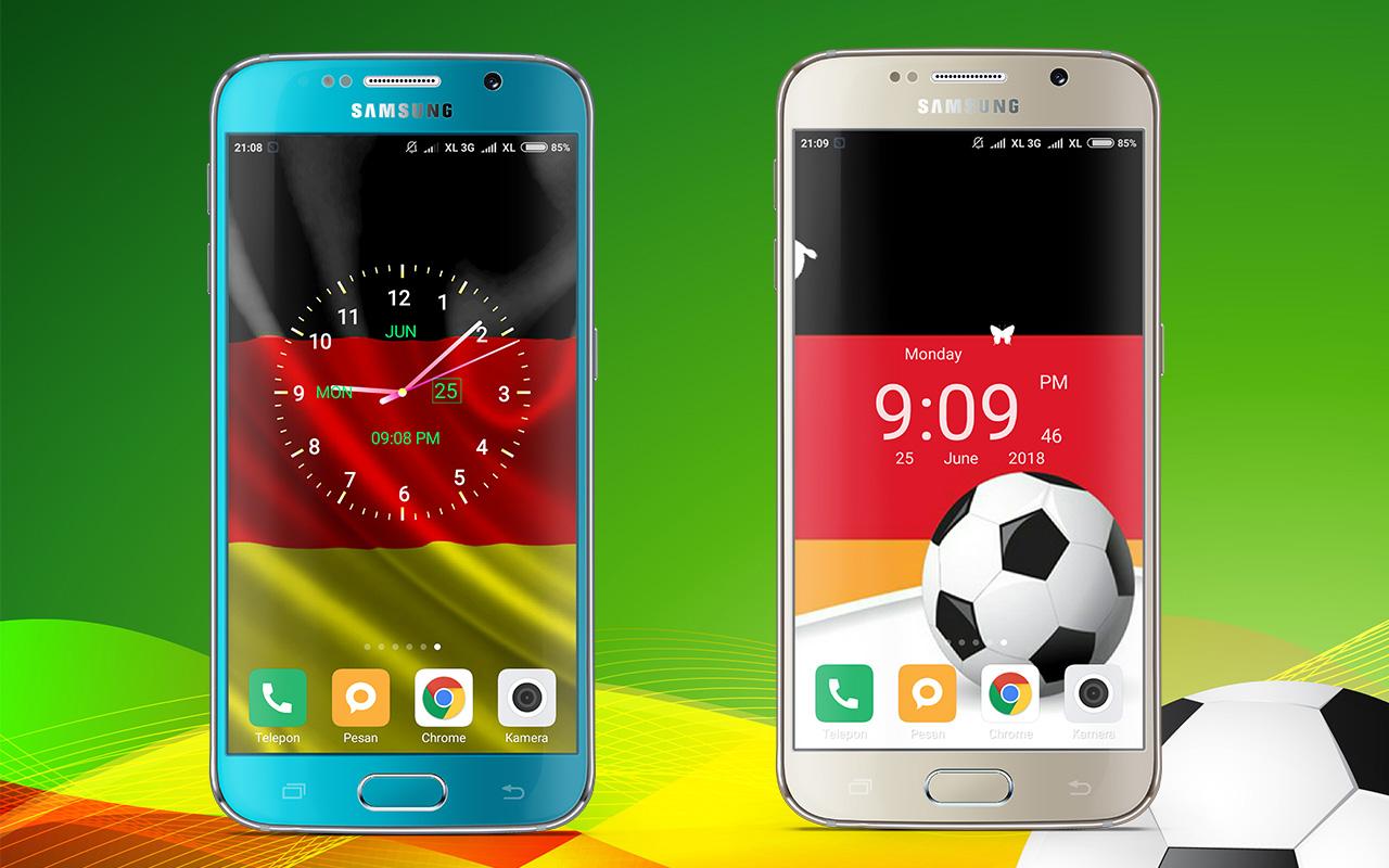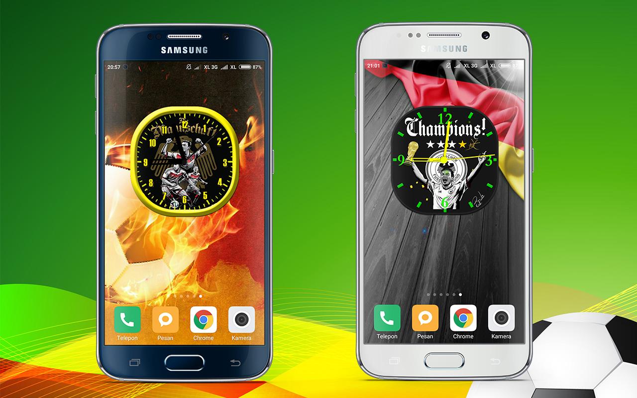 Change the default wallpaper on your phone with the Germany Football Wallpaper Clock Live app and support the Deutschland national team at the World Cup soccer. Germany Football Wallpaper Clock Live application can increase your pride to the Germany national football team. There are a lot of HD quality wallpaper images and an interesting Deutschland clock live wallpaper for you to use as your wallpaper.