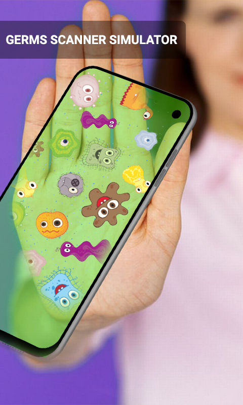 This germs scanner app is not a real germs scanner camera app because it does not have any features of a real germ scanner. It shows only the given (bacteria and viruses) image on your hand. So you should not use it as a real germ scanner.