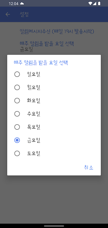 4. 當應用程序打開時,從設置菜單中選擇一周中的哪幾天接收通知。