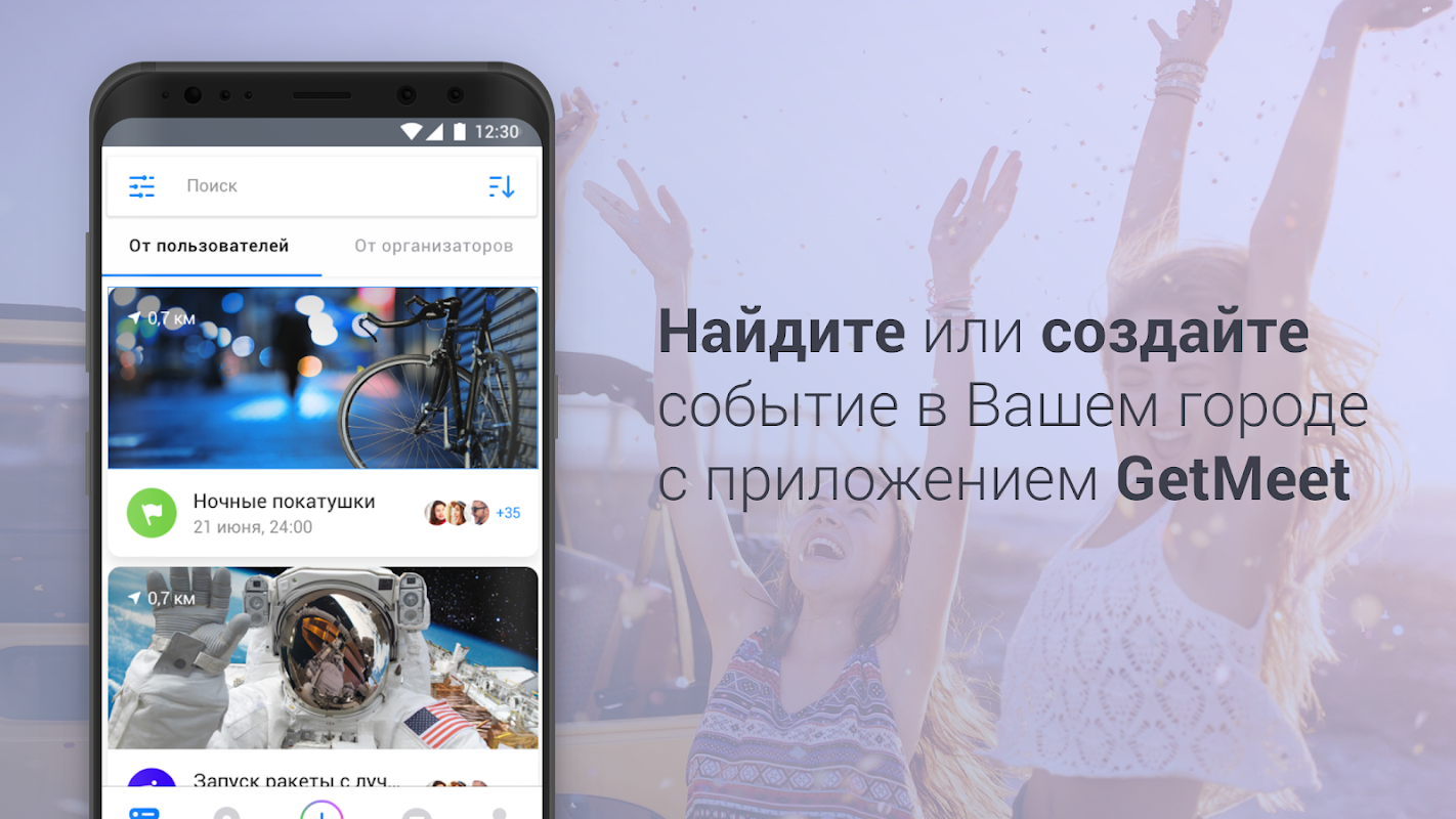 GetMeet позволяет общаться, создавать встречи, листать афишу событий или просматривать их на карте вокруг себя, находить новые знакомства. Это не просто приложение, а среда, объединяющая воедино все, что происходит в городе, начиная с профессиональных эвентов, вечеринок и тусовок, заканчивая забегами в парке по утрам, прогулками с детьми и походом в кинотеатр.