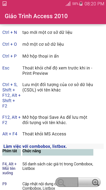 Ngoài ra còn có các phím tắt hỗ trợ trong MS access 2010, video hướng dẫn...