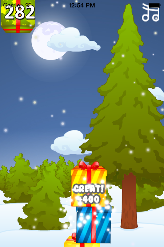 The object of the game is to stack as many gifts as you can, the higher you get the more points you get, you also bet bonus points for stacking the gifts perfectly on top of each other.