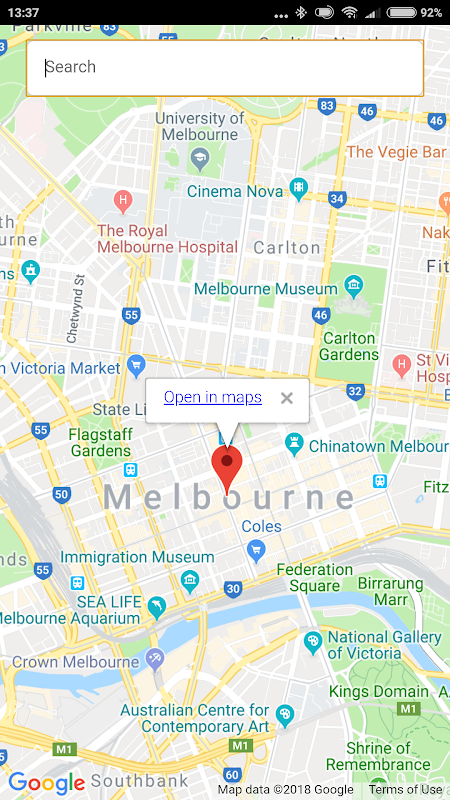 Browse and search for locations, pins popup with links that, when clicked, will be sent to your app of choice on your android device.