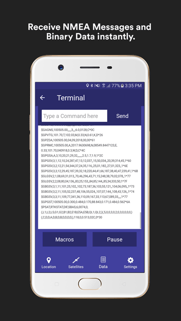 - 易於使用一鍵式先前配置的命令直接與 GNSS藍牙設備通信。