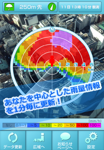 “下雨了!探測器(Goutanchiki)”是一種新型的天氣應用程序,可顯示天空中您周圍的雨況。