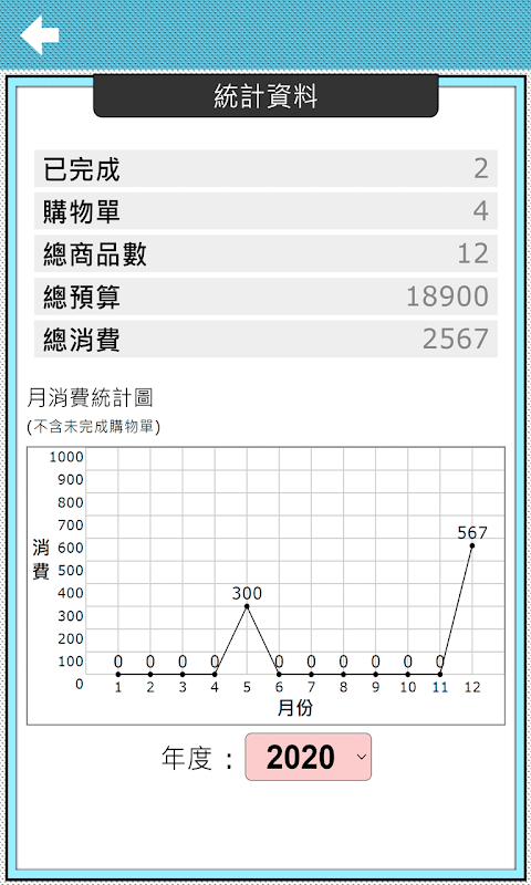 完成購物後自動記錄成統計圖表,清楚了解年間消費狀況。