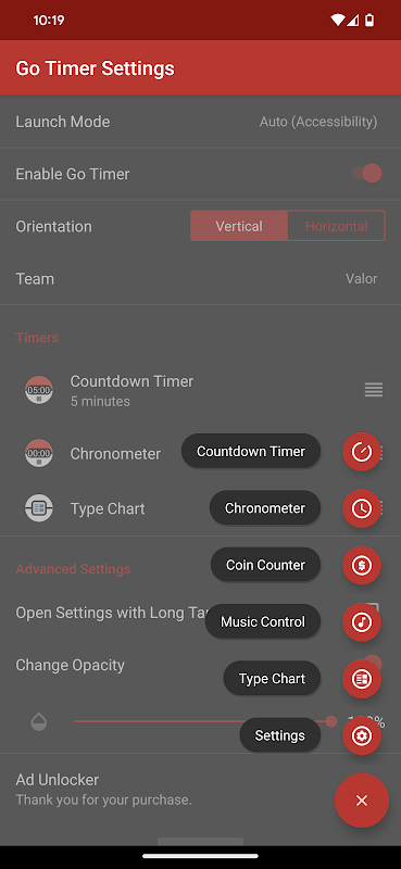 ✓ 玩 Pokémon GO 時自動顯示/隱藏計時器