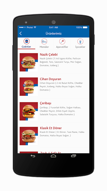 -Menü içerikleri
