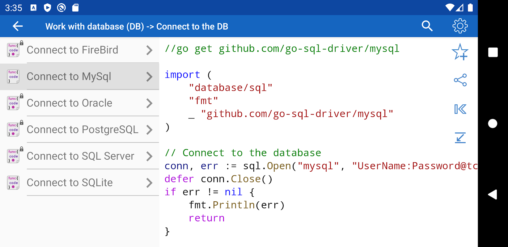 • 程式中選擇了書籍和特定網路資源中的最佳程式碼範例。在網路上尋找最佳決策可能需要數小時的工作時間。應用程式中包含可供使用且經過測試的程式碼「配方」。