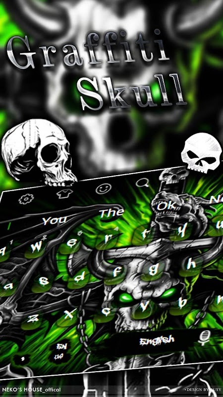這款哥特式金屬塗鴉骷髏鍵盤主題適用於所有喜歡哥特式和冷靜的風格和熱愛3D科技朋友的人。哥特式金屬塗鴉骷髏鍵盤主題充滿魔鬼哥特式的黑暗背景風格,適合喜愛哥特式塗鴉骷髏的人。你可以搭配你的骷髏衣服或其他東西。綠色和哥特式的風格,有眼睛保護作用的背景適合於視覺疲勞的人和壓力下的工作人員。哥特式金屬塗鴉骷髏鍵盤主題,不管手機品牌和手機型號,喜歡哥特式經典風格的女士或紳士,歡迎下載並安裝哥特式金屬塗鴉骷髏鍵盤主題! ! ! !