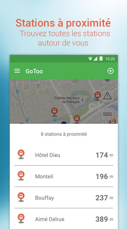 GoToo,您還可以查看您所在位置附近的信息,如公共自行車,其他用戶GoToo使得跟踪模式或拼車領域之旅。