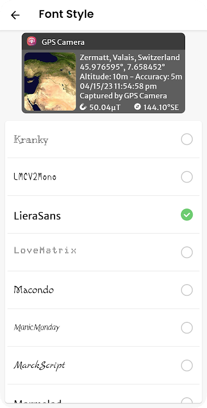 GPS Camera Stamp 包括高級相機功能,如曝光控制和閃光燈設置。保存帶有 GPS 標記覆蓋和原始版本的照片。使用降低音量鍵捕獲圖像。更新 GPS 標記覆蓋背景顏色、文本顏色和字體。