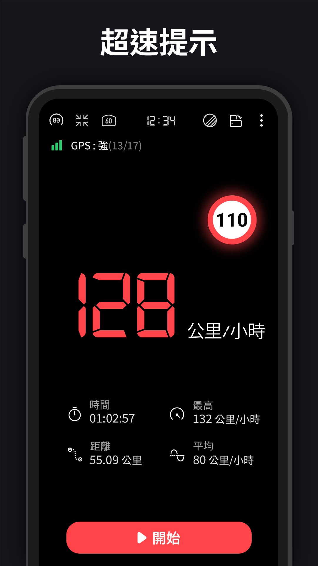 • 可自訂的超速警報