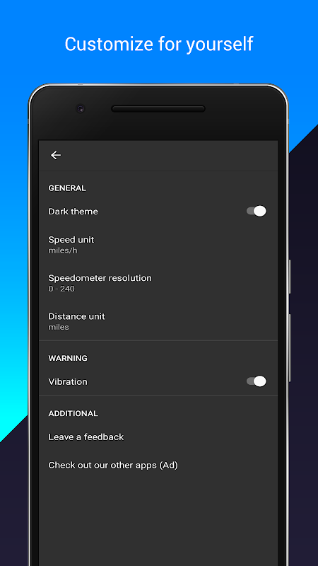 此應用程序是一個GPS速度表,用於顯示設備的速度。您可以選擇速度表的設計,還可以看到速度表的最大和平均速度以及運行時間。