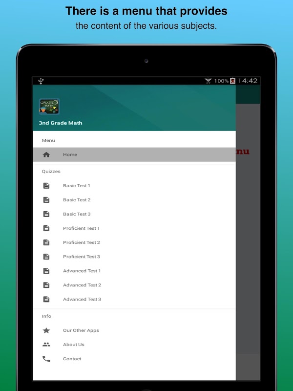 This app gives you an opportunity to test your skills in all Math subjects by performing tests.