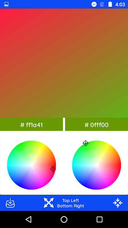 I figured that iterating fast is the key to finding matching colors, so Gradient Maker & Gradient Background Generator lets you do just that. You will find two color picker inside the app and all you need to do to create a gradient is to use your finger and move them around to update the color selected by each color picker.