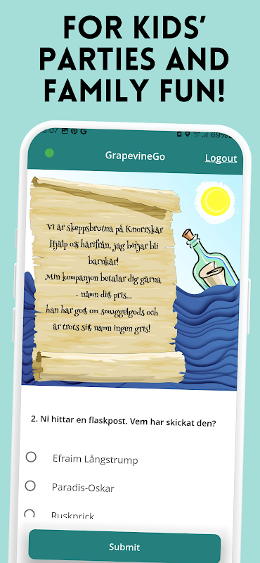 GrapevineGo 應用程序使用戶能夠參與定制的尋寶活動。尋寶有不同的主題,活動組織者決定尋寶的地點。