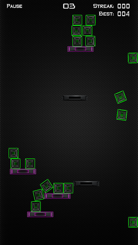 Touching the screen anywhere will cause the crates to move toward your finger. If a crate passes over a pad it will "turn off" and fall onto the pad. To beat a level you must stack all the crates on the pads, with at least one crate on each pad. It may seem simple at first, but the difficulty increases dramatically as you progress... Good luck!