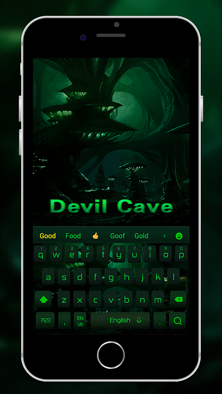 安裝惡魔洞窟綠色主題鍵盤讓你手機的各種很酷的動畫效果獨特。