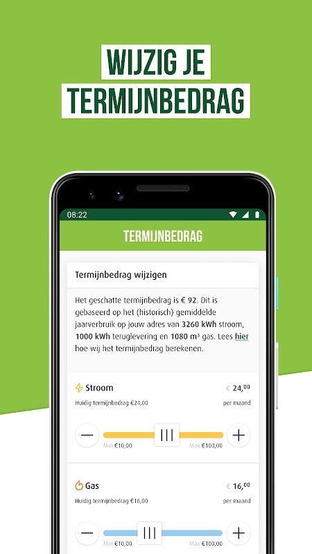 使用免費的Greenchoice應用程序,您可以自己安排許多能源事務。簡單,隨時隨地。這樣,您就可以控制電費賬單。