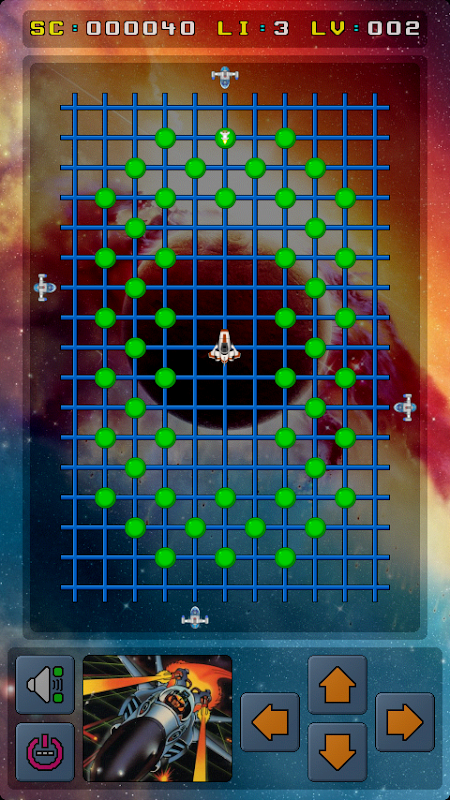 This game is based on Transversion, which was similar to the 80's classic GridRunner. The object of the game is simple ... clear each grid of pods and avoid being blasted by the Guardians around the edge.