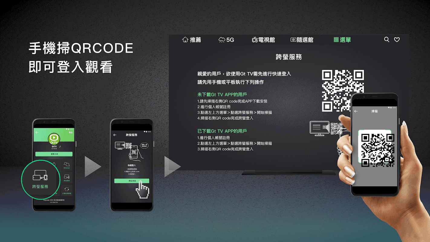 1. 下載後請用戶使用手機或平板申請註冊,使用跨螢服務進行登入