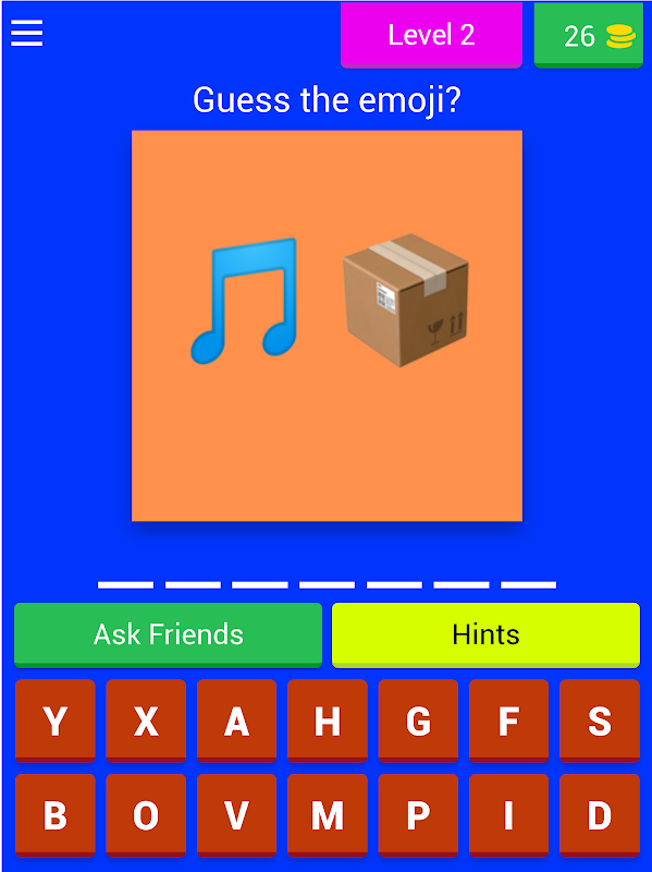 Emoji Quiz tests your guessing skills to solve Emoji puzzles! You will be shown a series of Emojis where you have to guess what the Emojis represent.
