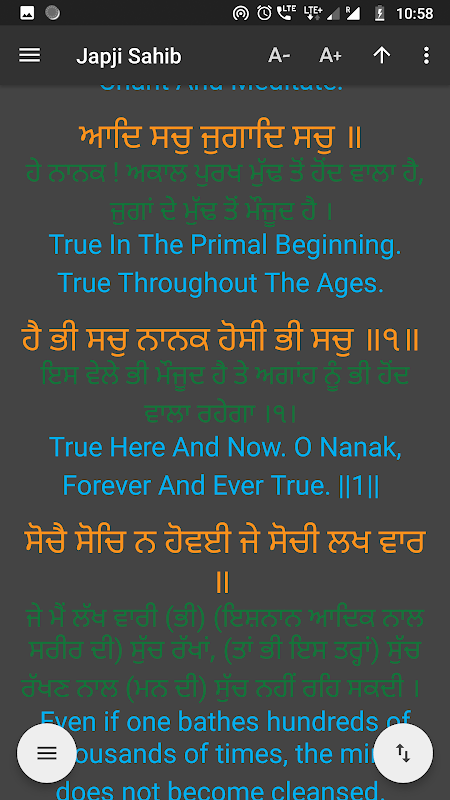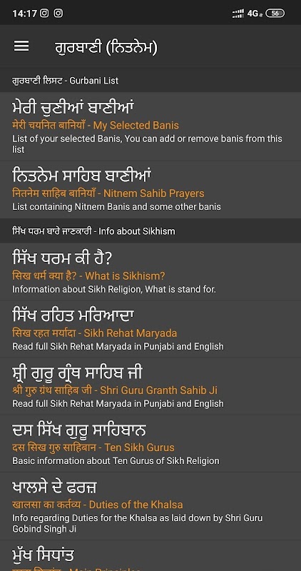 您可以用英語閱讀Gurmukhi,印地語,Shahmukhi(烏爾都語)中的所有bani,也可以閱讀旁遮普語和英語中每個bani的含義。