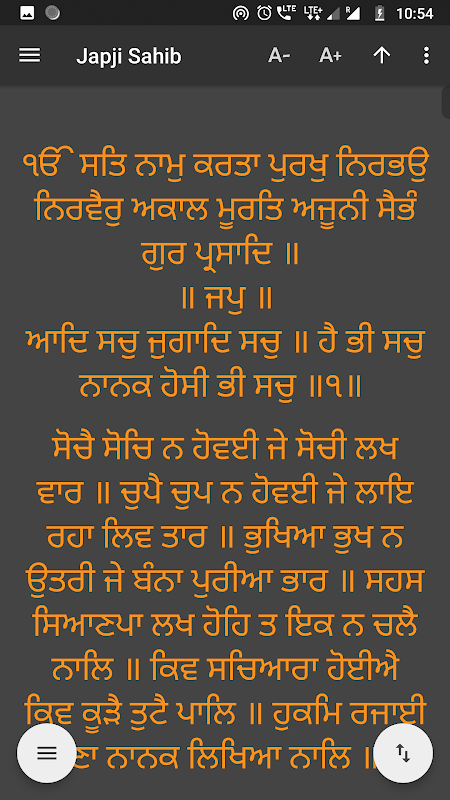 您可以將Gurbani文本的大小更改為更大或更小,並選擇要以斜體還是粗體或兩種方式閱讀。