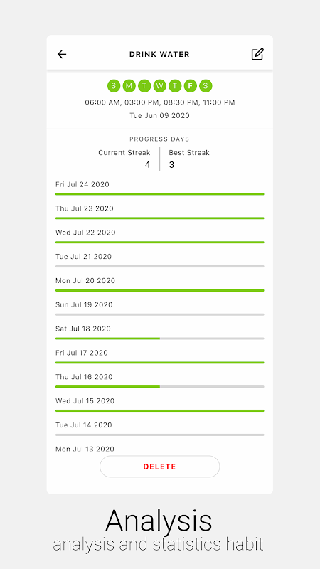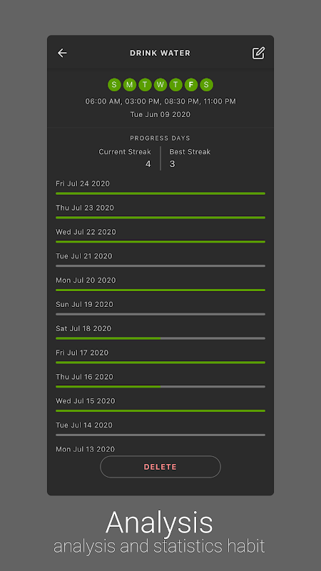Supports not only daily habits, but also habits with more complex schedules, such as 3 times every week; one time every other week; or every other day.