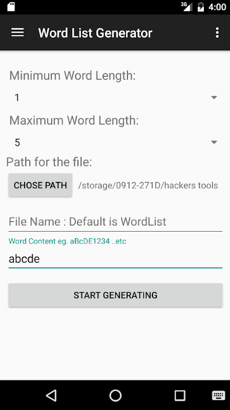 This tool helps hacker to generate a list of words you can specify attributes like the max and min length of the words ,and the word\'s characters and it predict the size of file before you create the list.