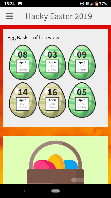 Hacky Easter is a white-hat hacking competition for fun an education. It is hosted by the well-known Hacking-Lab platform. Solve "capture-the-egg" challenges in order to get easter eggs, and improve your score. Challenges include: