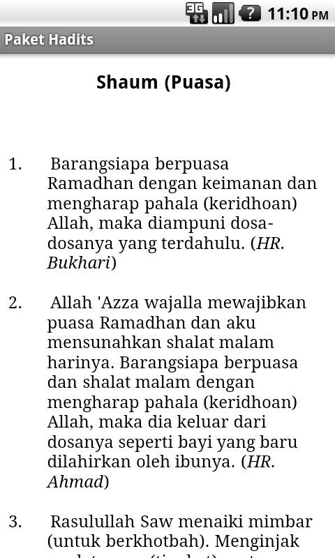 聖訓(Al-Hadith)是與伊斯蘭先知穆罕默德的言行相關的口頭傳統。 Hadith Pack包含基於許多參考文獻中的許多主題(主題)的hadith集合。