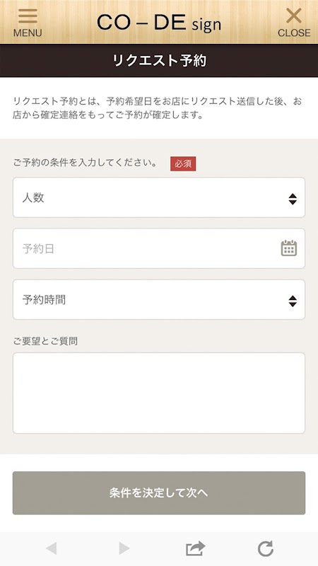 只需指定所需的菜單·日期和時間並發送,您可以請求預訂。