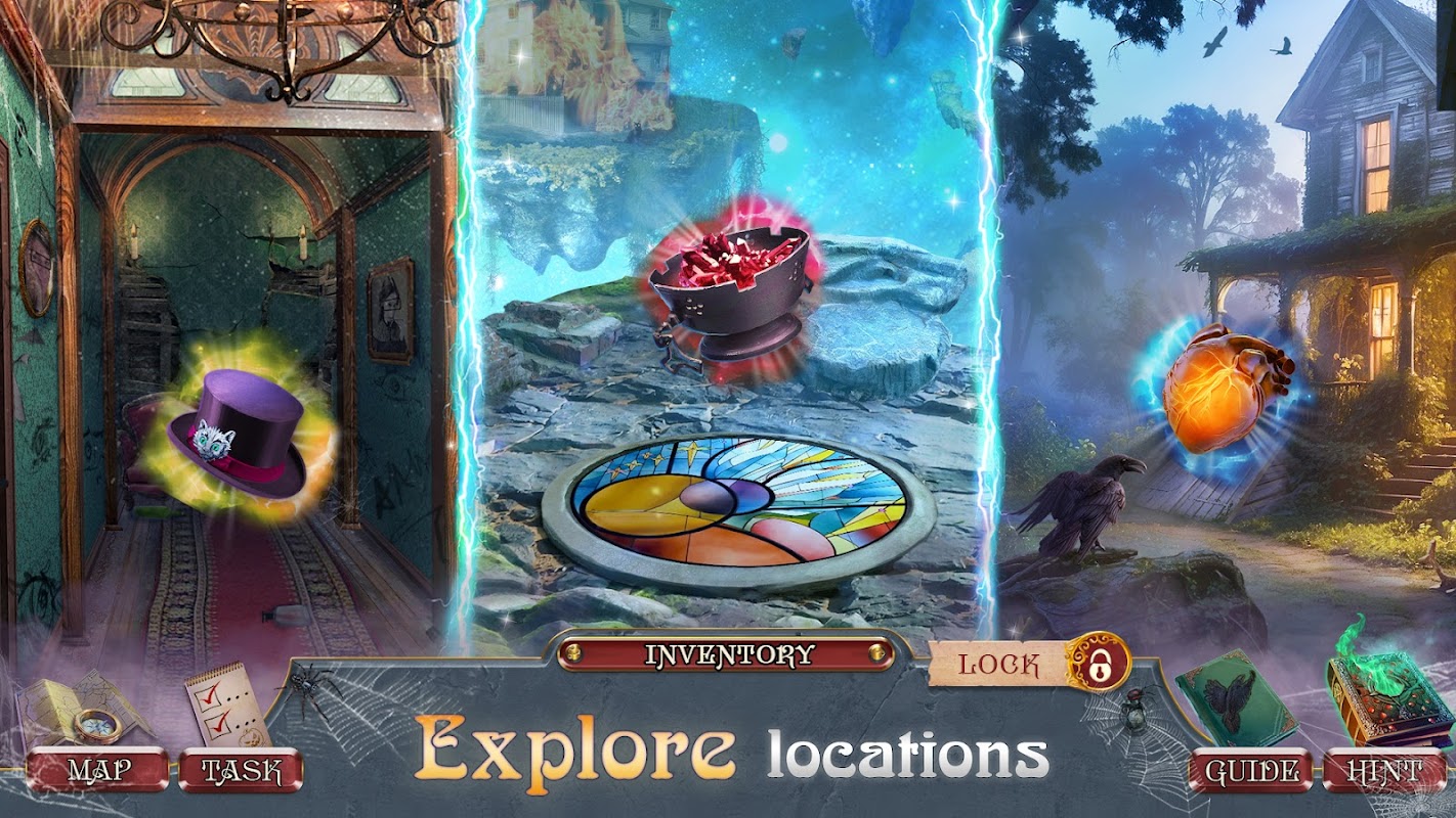 尋找遺失的物品、文物和隱藏的物品!在這個神秘的益智冒險中享受驚心動魄的地點和完成迷你遊戲!只有你才能幫助著名作家獲得自由!在萬聖節冒險中解開所有秘密並解鎖新線索。