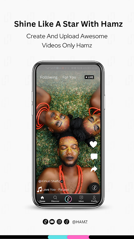 真正的人才聚集地 -Hamz 是一款娛樂性和信息性短視頻應用程序,涵蓋喜劇、舞蹈、口型同步、戲劇、美食、生活方式和時尚等高質量短視頻。