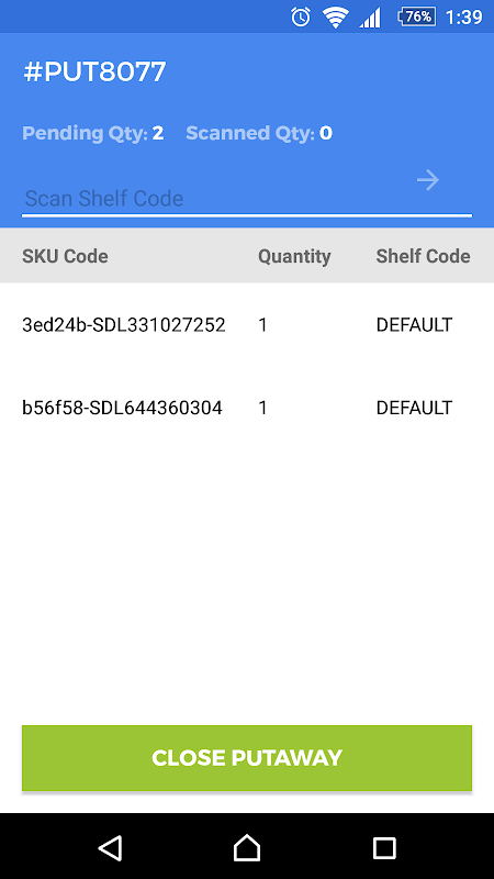 Process any pending putaway and create 'Shelf Transfer' putaway