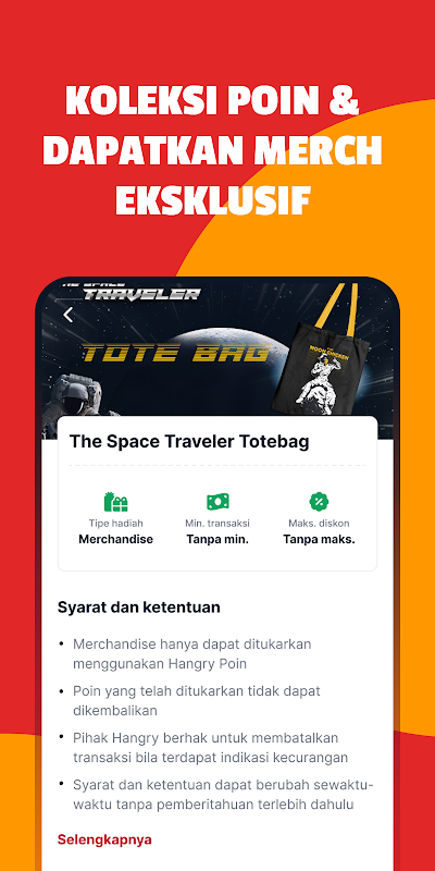 使用 Hangry 應用程式下的每筆訂單均可獲得 Hangry 積分返現,享受更經濟的生活。別擔心...對於喜歡透過 Grabfood、Gofood 或 Shopeefood 訂購的人,您也可以透過掃描我們的品牌購買收據來享受這些功能。積分可以用來支付更多費用或兌換各種誘人的獎勵!