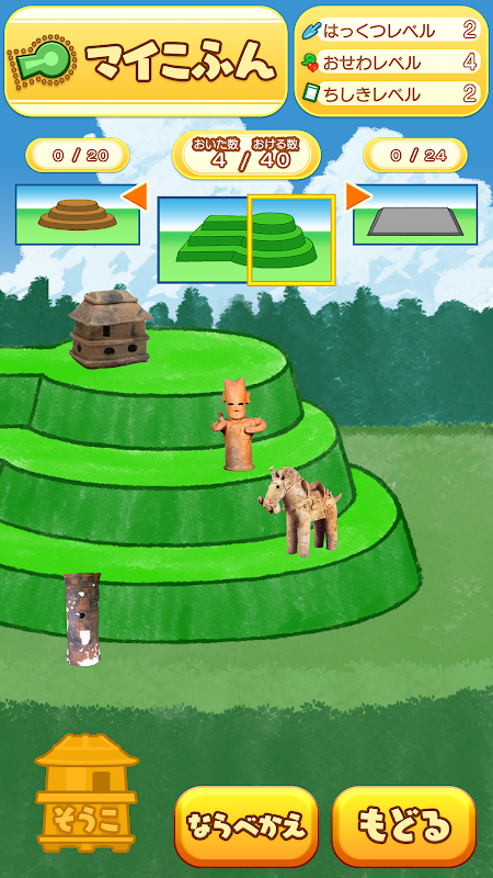 在我的古墳中可以排列您養的haniwa和您在博物館得到的朋友的haniwa。