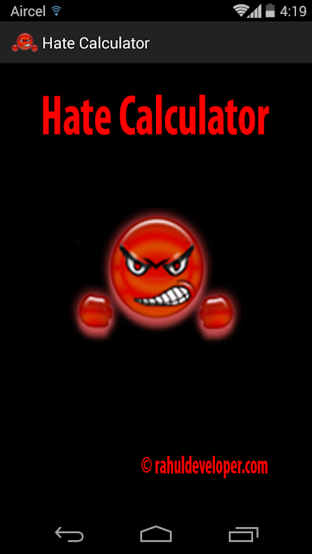 Bored with love calculators Check out hate calculator.Hate Calculator is a fun app for calculating hate between you and your buddy. Hate Calculator is showing hate with different smileys.