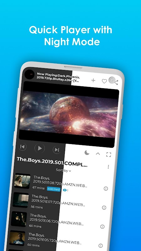 Night Mode in the video player makes gives a dark skin to the hd video player which lets you watch videos & movies in dark at night & protect your eyes. Download video player now.