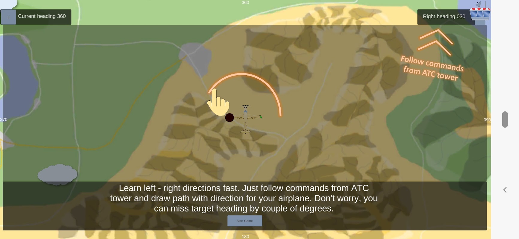 作為飛行員,玩家必須聽從 ATC 塔台的命令,並將飛機轉向正確的方向和航向。