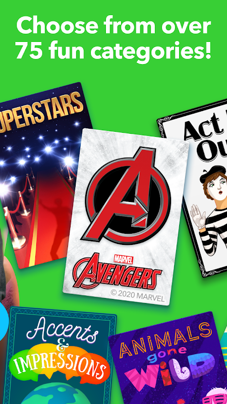 您可以在我們最受歡迎的類別之一中猜單詞,包括有趣的遊戲套牌,例如“哈利波特”,“朋友”和“驚奇”,也可以自己創建一個類別!
